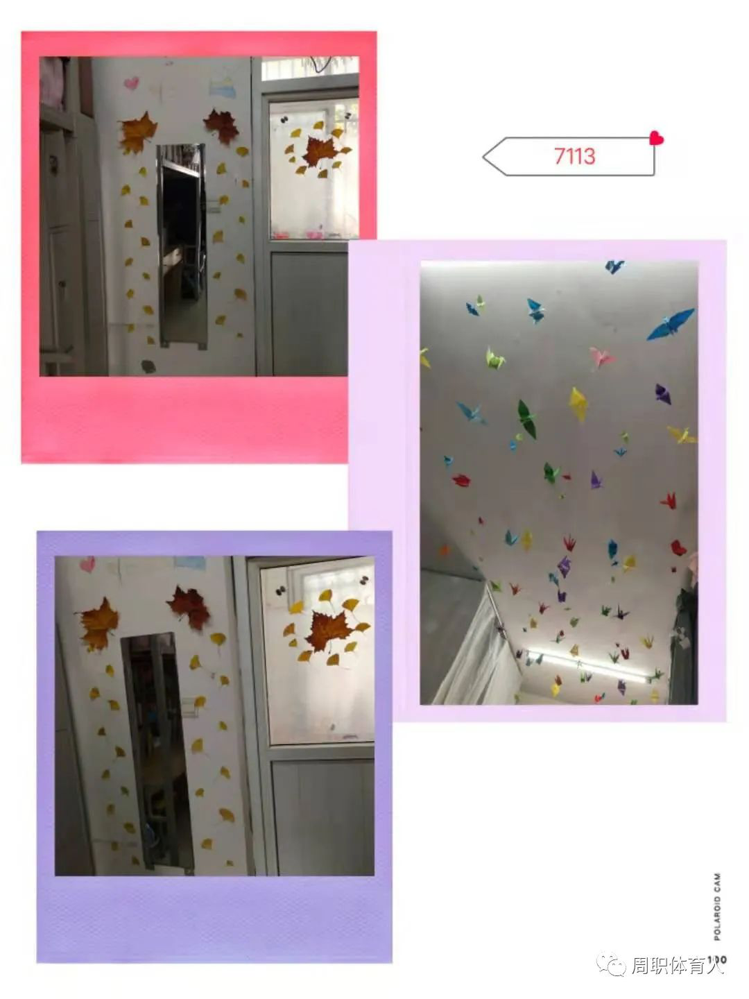 ·各个宿舍的同学根据自己的想法装扮自己的宿舍,包括门窗,墙壁,衣柜表面等,装扮时间为一周